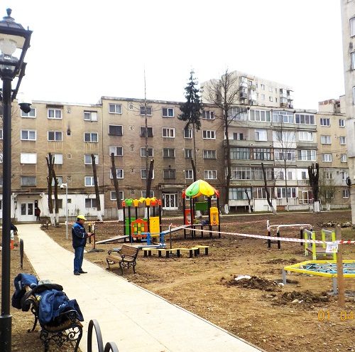 este terenul dintre și de pe lângă blocurile F8 și F9 de pe Bulevardul Mihai Viteazul. Aici au fost montate jocurile pe care copiii deja le folosesc. Sunt bănci pe care părinții sau bunicii care-i însoțesc pot să se odihnească și, din cele văzute în zilele însorite și călduroase, sunt destui care au făcut asta. Ca atare, bănuiesc că sunt mulți care au o părere bună despre ce s-a realizat aici. Spun asta, fiindcă mai sunt unii care zic că banii ar fi fost mai potriviți pentru o cantină socială sau un azil pentru vârstnici. Nu zic că n-ar fi bune și astea, dar banii europeni nerambursabili cu care sunt finanțate lucrările de regenerare urbană au o destinație precisă. Or, am băgat de seamă, mai sunt încă mulți care nu cunosc acest amănunt esențial.